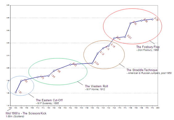 The history of high jump is a story of how big breakthroughs in performance happen.